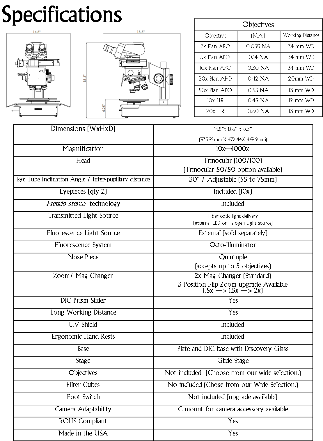 Unlike inferior microscopes, our FBS10 microscopes have an optional discreet zoom feature that allows for a quick flip from .5x to 2x zoom magnification. This is very similar to a linear zoom, without the associated standard light-loss. When not needed, this zoom system can be disengaged with the zoom optics removed from the light to better augment the light throughput.